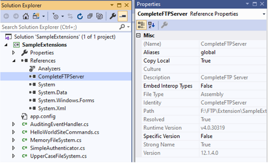 Files (x86)\CompleteFTP\Server. Make sure the Specific Version property is set to false so that you don't have to rebuild the assembly every time you upgrade CompleteFTP.