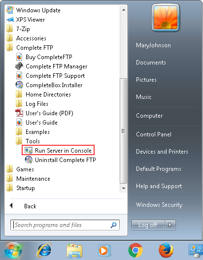 mode. This may be done by closing the CompleteFTP service and then selecting Run server in