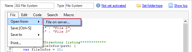 After that, the file can be loaded by 'File/Open from/File on server...'.