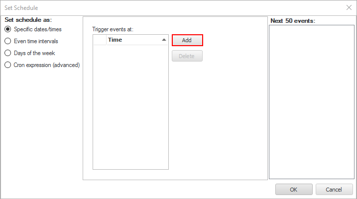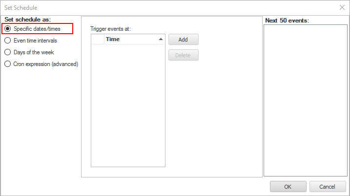 Select the 'Specific dates/times' radio button.