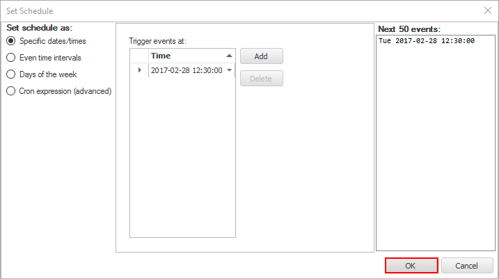 Close the 'Set Schedule' dialog box.