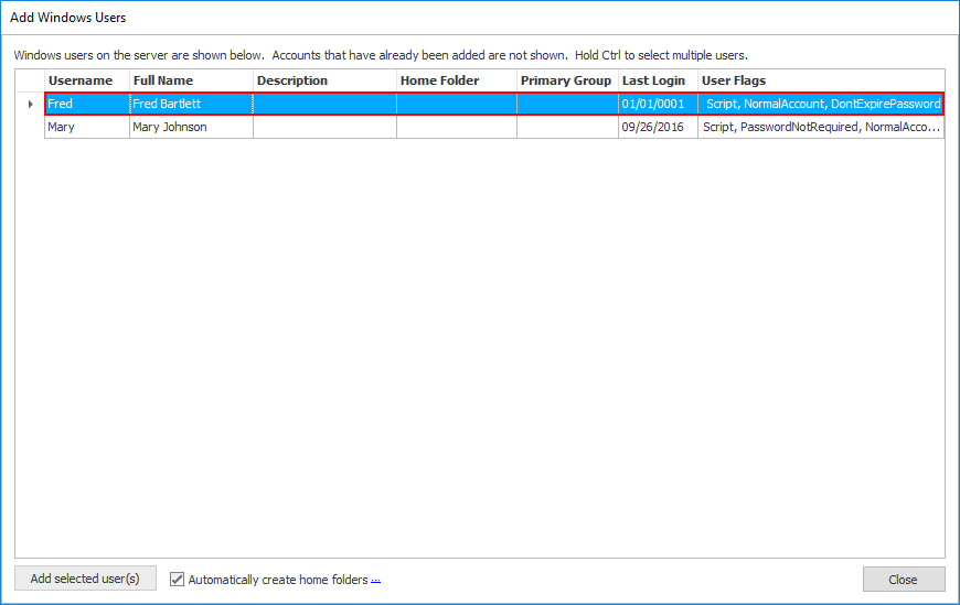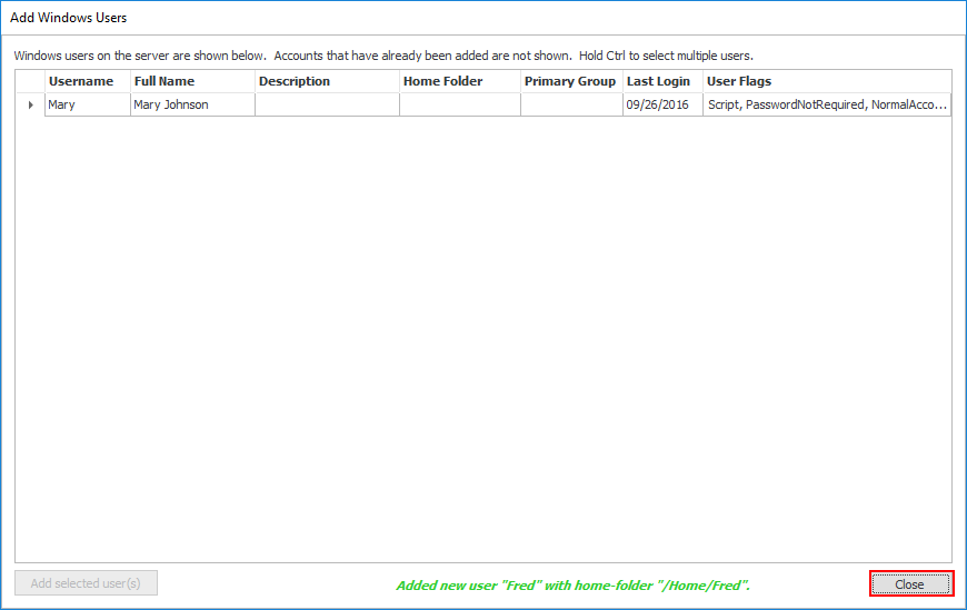 Click the 'Add selected user(s)' button. If you checked 'Automatically create home folders' then skip to step 8.