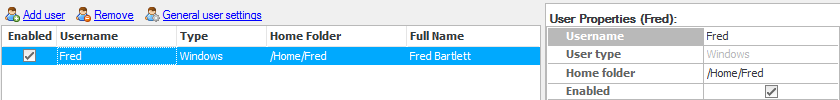 In the 'Add Windows Users' dialog box, select the user, e.g. 'Fred', to be added from the list.