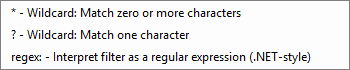 E.g. the filter 'Home/*' will match all files/folders under the /Home folder.