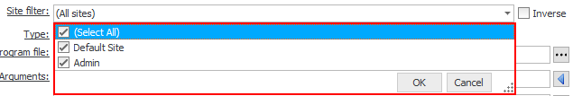 Select sites for which an event should occur from the 'Site Filter' dropdown list (Enterprise Edition only).