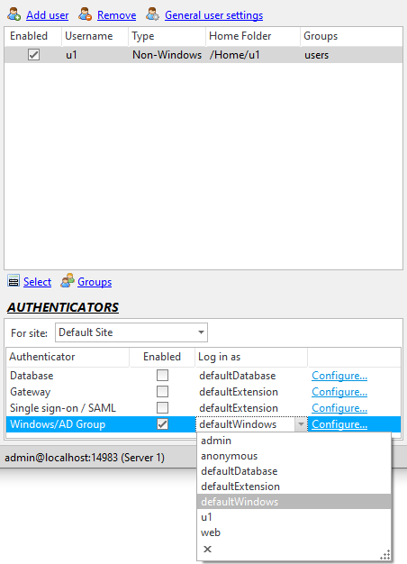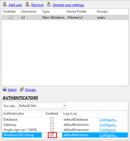 Click the 'Configure' link to the right, in order to enable logins for users who belong to a particular Windows group.