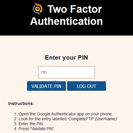 CompleteFTP Enterprise Edition supports Two Factor Authentication (2FA) through the use of Google's free Google Authenticator app and other compatible applications. It can be enabled by checking a single checkbox. Once enabled, web users will be required to install the app and activate the site before they can access CompleteFTP via HTTP/HTTPS. 2FA is not currently supported in protocols other than HTTP and HTTPS. It is, however, compatible with all authenticators available in CompleteFTP, such as SAML, Active Directory, external database and custom authenticators.