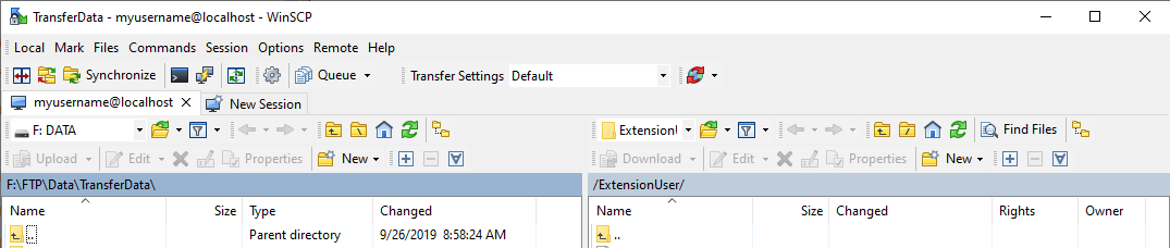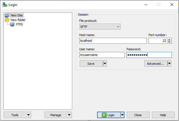 Login with WinSCP via SFTP with username = "myusername" and password = "mypassword".