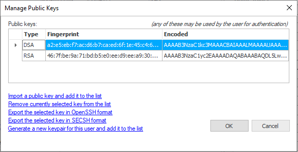 Firstly, go to CompleteFTP, generate the key pair for the user (public key and private key). Add the public key to the code.