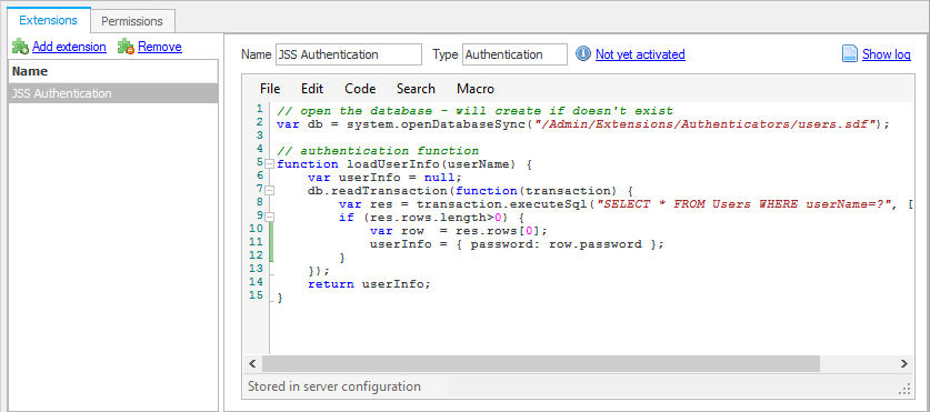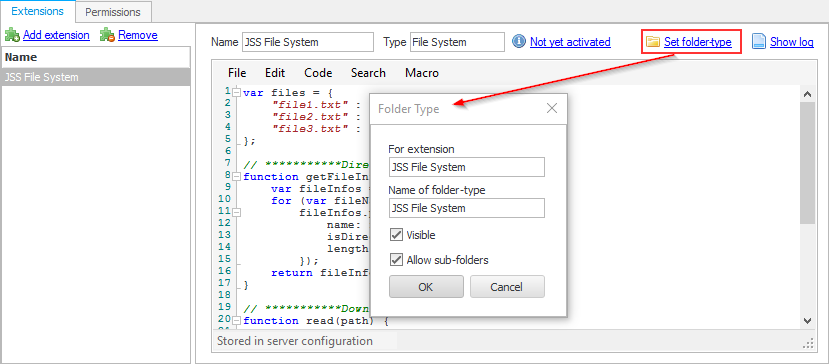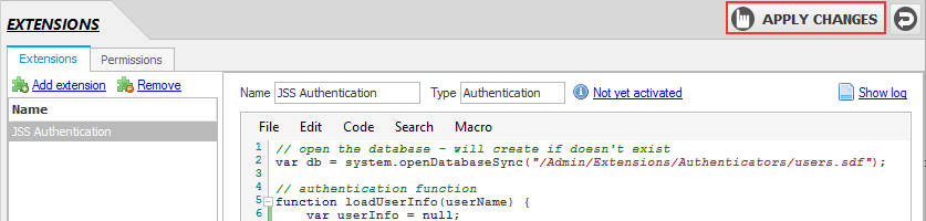 Some JSS extensions must be registered in order for them to take effect. This is done automatically for authentication and file-system extensions when they are created, but it must be done manually for custom-command extensions. Each type of JSS extension has its own method of registration: