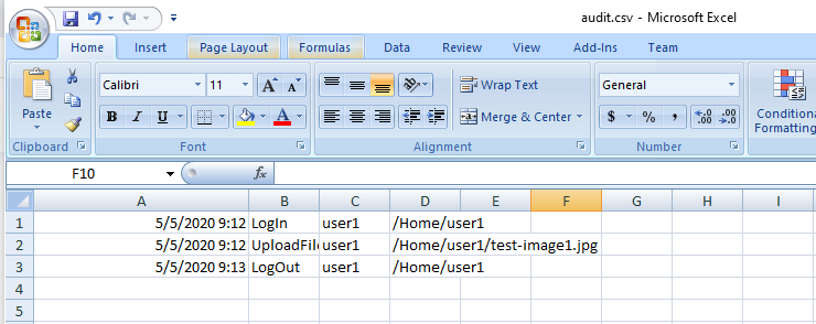 Check in C:\Users\{username}\AppData\Local\Temp or C:\Windows\Temp to see if the file audit.csv is there and that it has written the Login and Upload events.