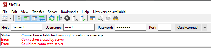 To implement this in JSS we need storage for our user-name blacklist and also for our list of IP addresses that have used the blacklisted user-names. An SQLite database is an easy option as it's lightweight, stores data in a single file and the required driver is included with CompleteFTP. The database must have two tables: