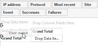 The beauty of a pivot grid is its flexibility. By simply dragging and dropping fields between these areas, you can quickly change the perspective of your data. Want to see data transfers by user instead of by protocol? Just drag the User-name field to the row area. It's that simple.