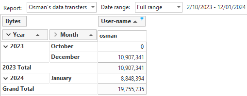 With this report, you'll get a clear picture of Osman's data transfers. This can be particularly useful for security audits or understanding user behavior.