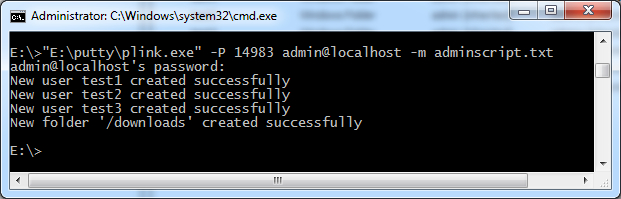 plink.exe -P 14983 admin@localhost -m adminscript.txt