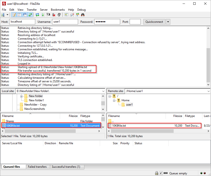 Now connect to the remote server as 'user2' and you will see the same file has also been uploaded to this account's home folder.