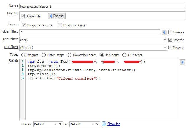 Now your new JSS process trigger is ready to use. Let's check it using Filezilla. If you're new to Filezilla, please check the how to use Filezilla here.