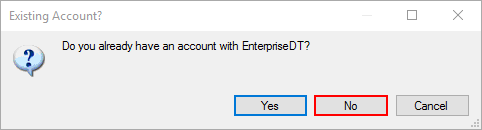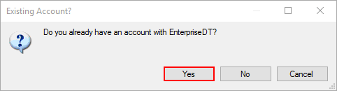 3. You will be asked whether or not you have an account with EnterpriseDT. Click 'Yes' or 'No'.