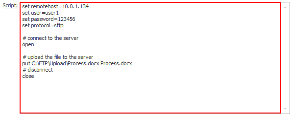 Enter the following script which will upload the file, 'Process.docx', to the remote server (10.0.1.134).