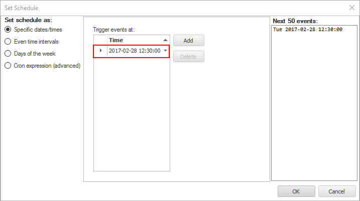Select the 'Specific dates/times' radio button.